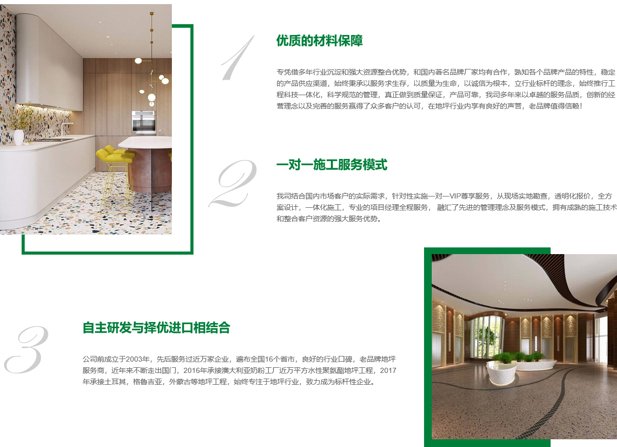 上海勇享地坪是上海勇享建筑裝飾工程有限公司旗下出色也是國內(nèi)地坪承建商企業(yè)。 本公司成立于2012年,是專業(yè)從事現(xiàn)代化水磨石工業(yè)地坪、商用地坪、國內(nèi)獨(dú)家創(chuàng)意類地坪、市政公用地坪、混凝土固化(染色)地坪,倉庫地坪設(shè)計(jì),停車場(chǎng)地面設(shè)計(jì),學(xué)校,精品地面設(shè)計(jì),酒店,餐廳各類地面的設(shè)計(jì)與施工,運(yùn)動(dòng)場(chǎng)地及其他地坪,水磨石地板系列的研發(fā)、設(shè)計(jì)、生產(chǎn)、銷售、施工、服務(wù)為一體的高新科技企業(yè)。
